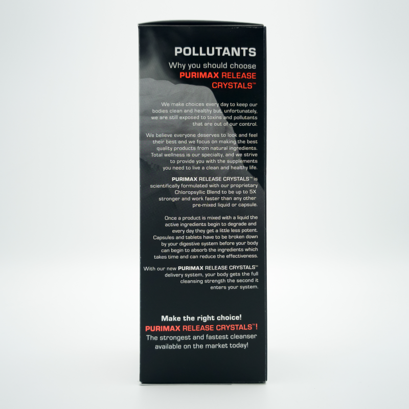 Purimax Cleanser Release Crystals is scientifically formulated with our proprietary Chloropsyllic Blend to be up to 5X stronger and work faster than any other pre-mixed liquid or capsule. Once a product is mixed with a liquid the active ingredients begin to degrade and every day they get a little less potent